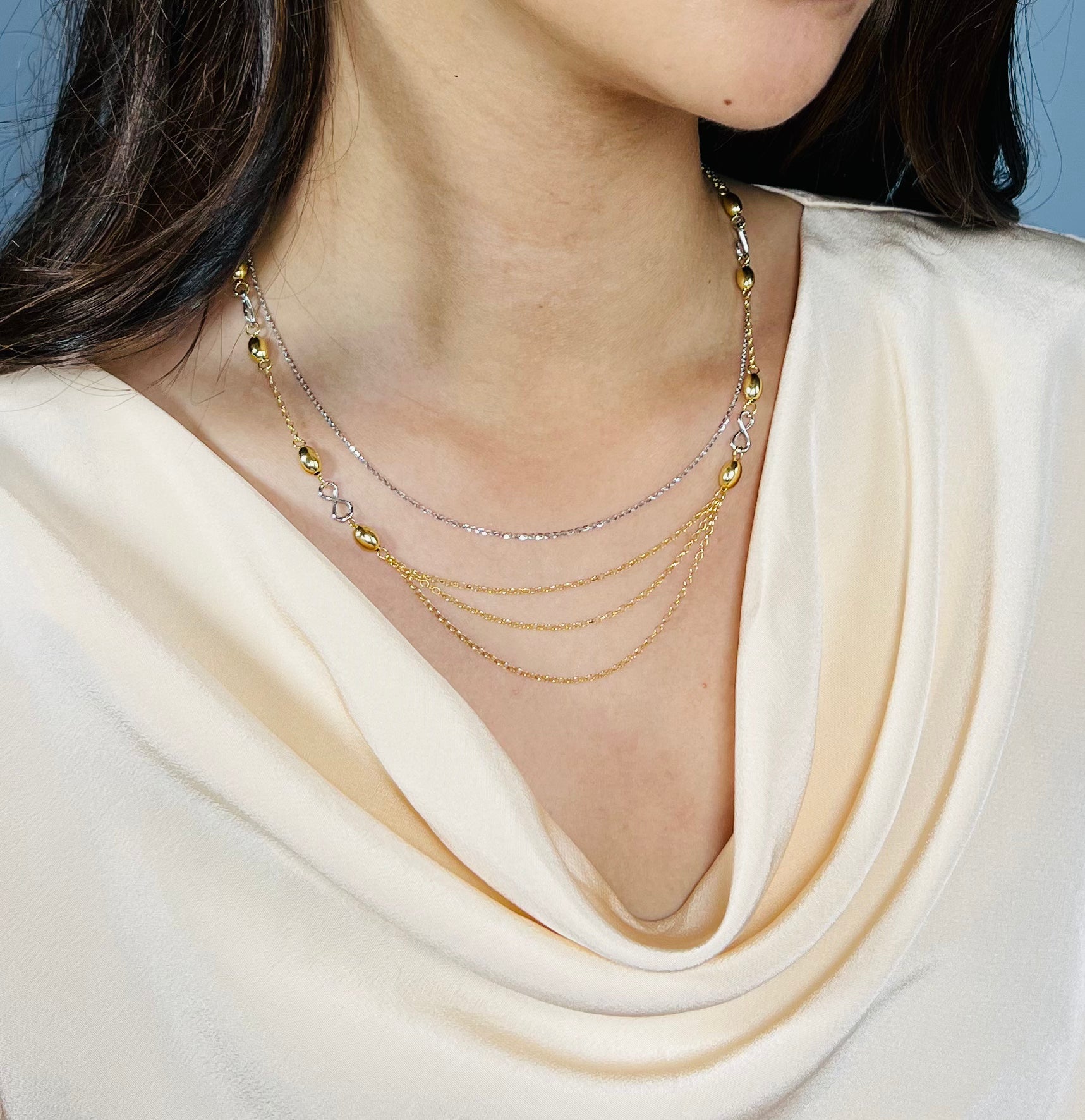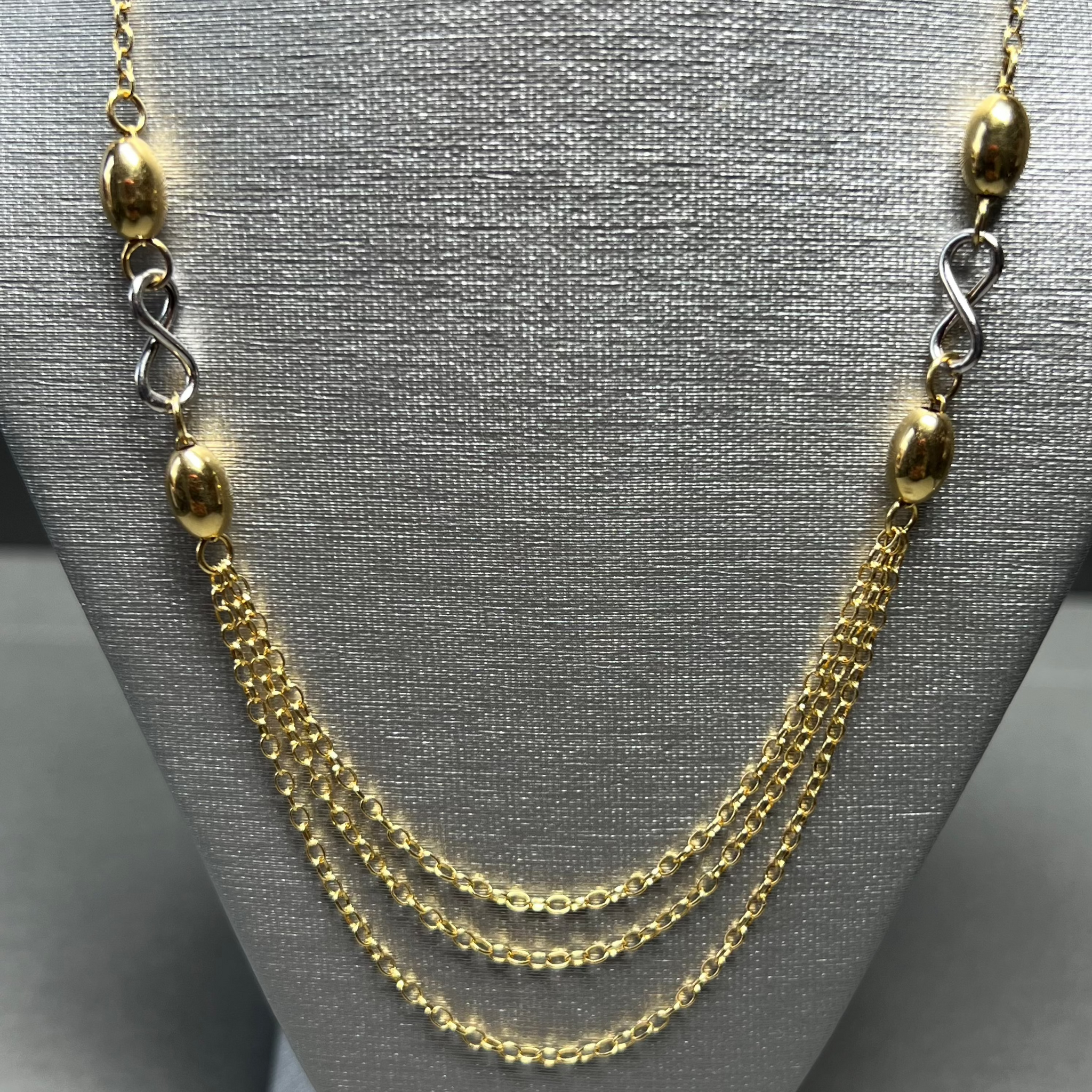 14K Italian Yellow & White Gold Infinity Three strands chain necklace